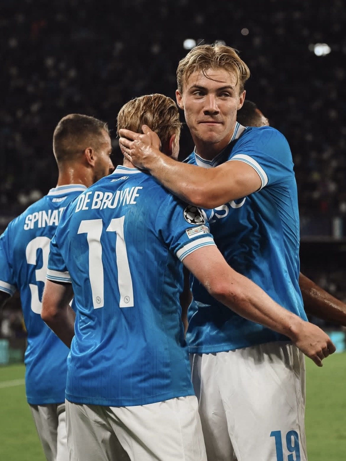 Per la sfida di Champions League, seconda giornata, scendono in campo Napoli e Sporting Lisbona, terminata 2-1 con la doppietta di Hojlund per gli azzurri e Suarez per i portoghesi. Comincia il match con il Napoli che gestisce molto palla, cercando di trovare spazi con De Bruyne, ma che inizialmente non riesce a sfondare. Lo Sporting si posiziona molto bene difensivamente, ma anche gli azzurri concedono poco e niente, sembra una partita abbastanza bloccata. Per arrivare al gol che sblocca il match, passiamo al minuto 36: ripartenza del Napoli, con De Bruyne che verticalizza per Hojlund, con due difensori addosso riesce ad insaccare e portare gli azzurri in vantaggio. Da questo, lo Sporting sembra subire abbastanza la pressione della squadra di Conte, il gol subito ha sicuramente avuto un impatto forte su di loro. Termina il primo tempo sul punteggio di 1-0, un buon Napoli che si é portato in vantaggio grazie ad una giocata di De Bruyne per Hojlund. Ricomincia la partita, ed ancora sono gli azzurri a pressare per trovare il gol del raddoppio, ma di lì a poco, arriva un calcio di rigore per gli ospiti. Fallo commesso da Politano in area su Araujo, l’arbitro non ha dubbi: sul dischetto ci va Luis Suarez che calcia e spiazza Milinkovic-Savic, parità ristabilita. Intorno al 70’ arrivano i cambi per Conte, con l’inserimento di Neres e Lang, e con loro un cambio modulo, il 4-3-3. Lo Sporting pressa tanto gli azzurri, creando non poche occasioni ma che la difesa del Napoli riesce a smussare. Arriviamo al 79’ ed ecco il gol del raddoppio per la squadra di Conte: su sviluppi di calcio d’angolo, scambio tra Lang e De Bruyne che crossa in area e trova la spizzata vincente di Hojlund. Doppietta personale per l’attaccante Danese e doppio assist per Kevin De Bruyne, ottima serata per entrambi. La partita prosegue senza problemi, arrivando al minuto 90 dove vengono concessi 4 minuti di recupero dove la squadra ospite tenta il tutto per tutto per pareggiarla. Proprio allo scadere arriva una clamorosa occasione per lo Sporting, con un colpo di testa ravvicinato di Hjulmand, miracolo di Milinkovic che salva il risultato. Game over al Maradona, il Napoli vince 2-1, prima vittoria in Champions con un super Kdb e un super Hojlund.